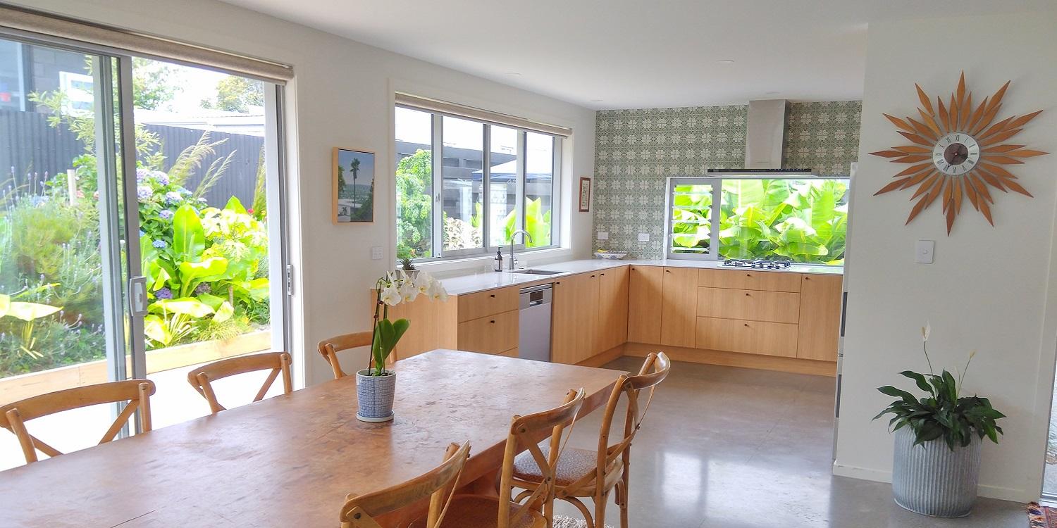 Great views from modern kitchen and dining area